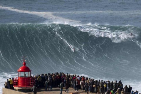 THIS is the breath-taking moment a daredevil surfer rides a 65ft wave in Nazare. Brazilian