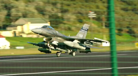 United States stations F-16 fighters and refuelling planes at Azores airbase